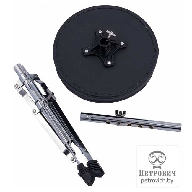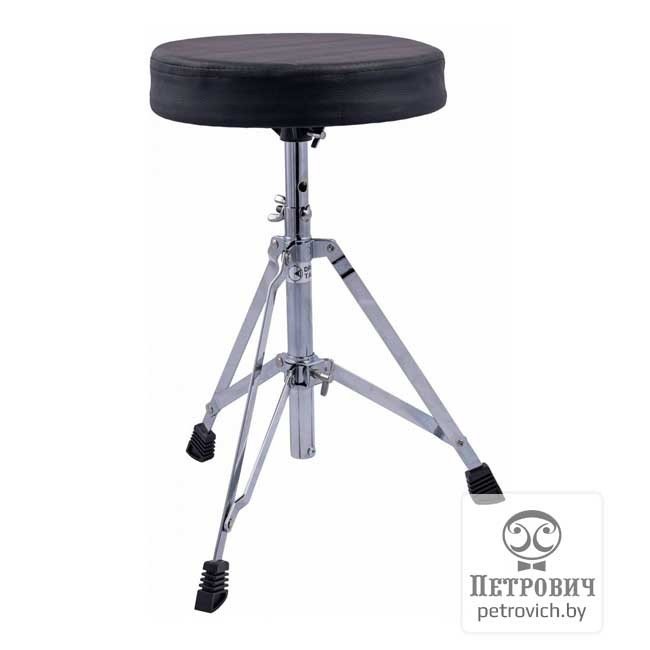 Это удобный и надежный стул, обеспечивающий комфорт даже при длительной игре. Он имеет прочную металлическую конструкцию с тремя усиленными и нескользящими ножками. Сиденье данной модели имеет круглую форму, мягкий наполнитель и приятную обивку из искусственной кожи. Реализованный здесь ступенчатый механизм регулировки высоты позволяет подстроить стул под человека с любой комплекцией. Кроме того, стул обладает небольшим весом и компактно складывается для удобной транспортировки.